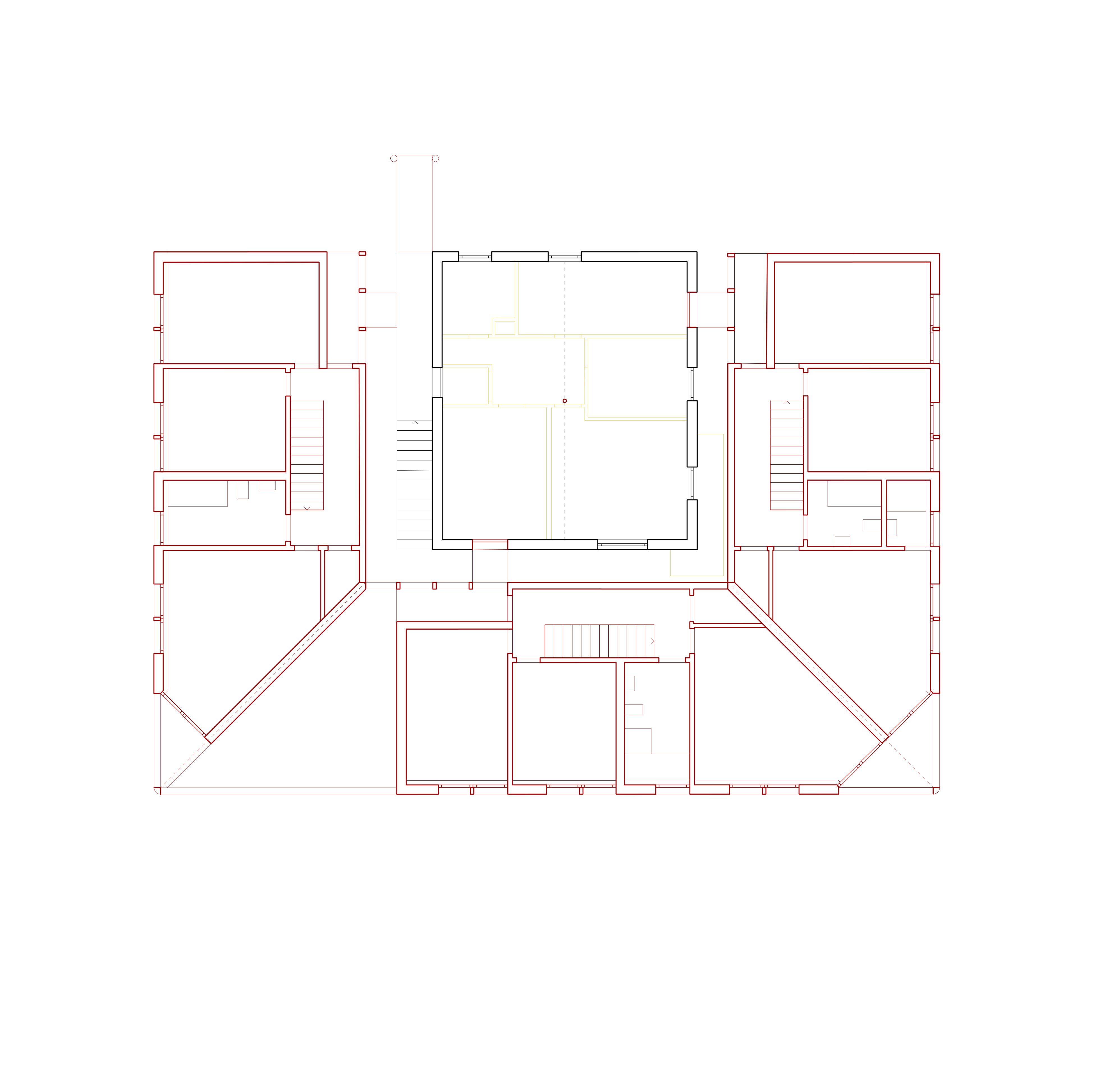 À l’intérieur un nouveau corps se développe, les planchers se raccordent aux nouvelles ceintures de bois, réinterprétant les plafonds existants par le biais d’un quadrillage de caissons techniques. Un noyau parasismique central organise et distribue les espaces, tout en abritant les services.